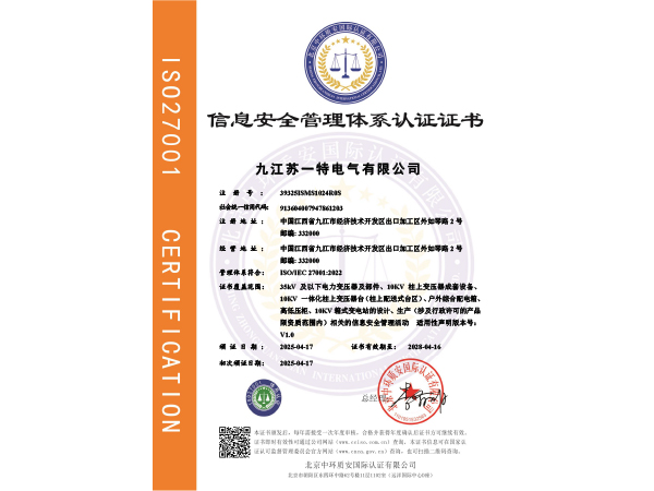 九江蘇一特電氣有限公司創(chuàng)建于2006年,位于九江市出口加工區(qū)。是一家從事電力變壓器及其鐵心部件和各種特種變壓器的開(kāi)發(fā)、設(shè)計(jì)和制造的高新技術(shù)企業(yè)。公司交通十分方便,毗鄰福銀高速公路、京九鐵路,長(zhǎng)江水運(yùn)擦肩而過(guò),緊靠風(fēng)景秀麗的廬山。